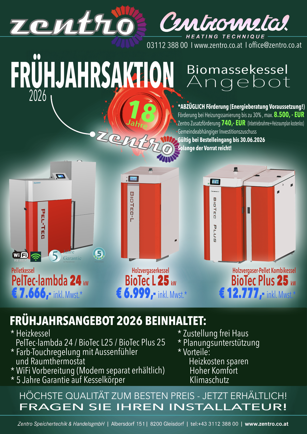 Zentro Speichertechnik hat sich darauf spezialisiert, durch moderne, effiziente Pufferspeicher- und Biomassenheizsysteme Energie einzusparen und so die Umwelt effektiv zu schonen. Wir beraten Sie professionell und kompetent – denn wir verfügen über sehr viel Fachwissen im Bereich moderner, umweltfreundlicher Heizanlagen und sehen uns als Dienstleister für innovative Pufferspeichertechnik. Weiters beraten wir Sie zuverlässig zu allen Fragen rund um effiziente Energieversorgung.